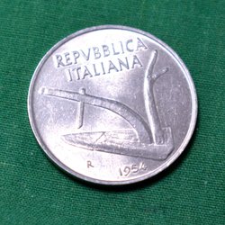 Italien 1954 Aluminium Mynt 10 Lire Kv.8