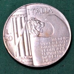 Italien 1928 Silver Mynt 20 Lire Kv.8