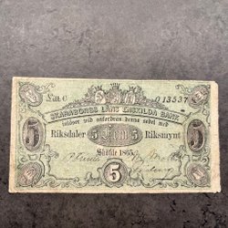 Sedel - 5 riksdaler riksmynt 1865