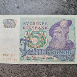 Svensk Fem Kronor Sedel från 1981 - Gustav Vasa - Sveriges Riksbank