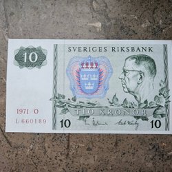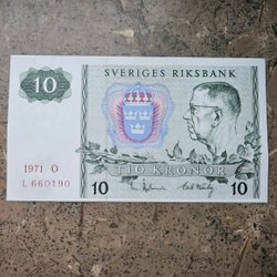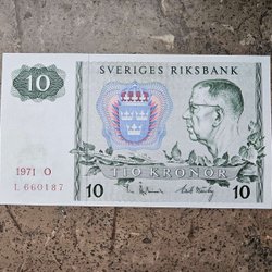 Svensk Tio Kronor Sedel från 1971 - Gustaf VI Adolf & Riksvapnet - Sve Riksbank