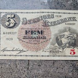 5 kr sedel 1939 - inga riss - skick - se bild!