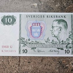 Svensk Tio Kronor Sedel från 1968 - Gustaf VI Adolf & Riksvapnet - Sve Riksbank