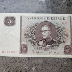 Svensk Fem Kronor Sedel från 1961 - Gustaf VI Adolf & Svea - Sveriges Riksbank