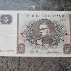 Svensk Fem Kronor Sedel från 1955 - Gustaf VI Adolf & Svea - Sveriges Riksbank