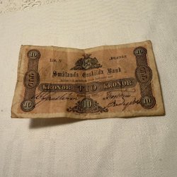 PRIVATBANKSEDEL Enskilda Bank 1877 - sedel 10 kr - märkt Jönköping 1977