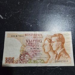 Belgisk sedel 50 Francs Sedel från Belgien, utgiven 1966