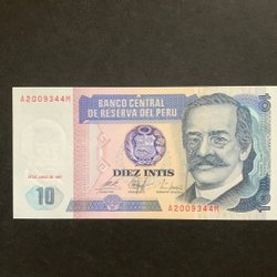 Peruansk Sedel - Diez Intis 1987 UNC