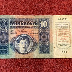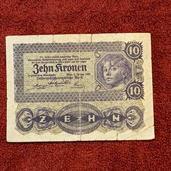 1922 Österrike-Ungerska Kejsardömet 10 Kronen p-65