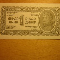 Jugoslavisk Sedel - 1 Dinar från 1944
