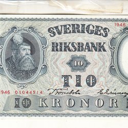 Sedel 10 kronor 1946 bättre årtal ovikt ca 0 toppex