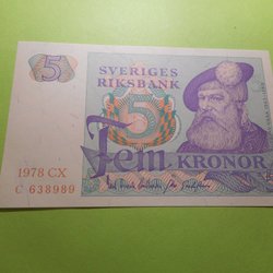 1 ST OVIKT 5 KR SEDEL FRÅN 1978.