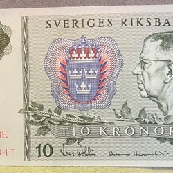 Sveriges Riksbank Sedel 10 kronor 1980 ovikt