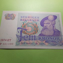 Svensk sedel 5 Fem Kronor 1977