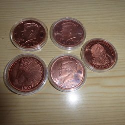 5 st. kopparmedaljer mynt 1 avdp oz John F. Kennedy Native American made in USA
