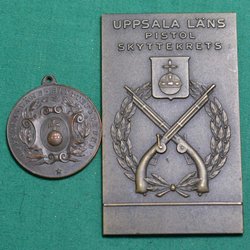 Medalj-set (67) Uppsala Läns Skytte Krets & Förbund Äldre Medalj & Plakett