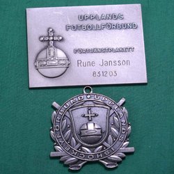 Medalj-set (46) Upplands Fotbolls & Ishockey Förbund Stor Förtjänstplakett & Med
