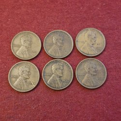 6 olika 1 cent 1910 - 1930 USA