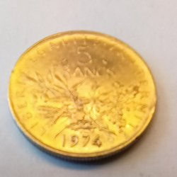 Fransk 5 Francs från 1974 i toppskick