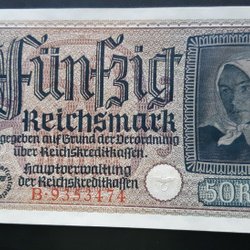 TYSKLAND 50 REICHMARK UNC 1939-45 SVÅR SEDEL