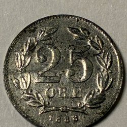 25 öre 1888 Oscar II L.C Lauer Nurnberg Spelpenning