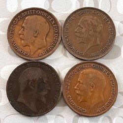 Äldre mynt Storbritannien 1 Penny 1902, 1914, 1920, 1934