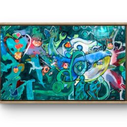 Inramad målning på duk