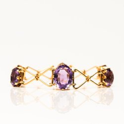 Vacker vintage armband i 18k guld med ametist stenar, 18,5cm