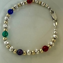 Italienskt silverarmband 925 med färgade stenar och gulddetaljer