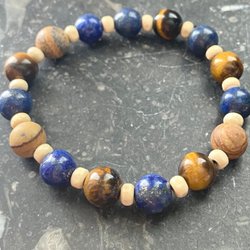 armband med lapis lazuli, tigeröga & landskapsjaspis