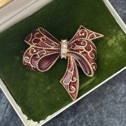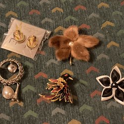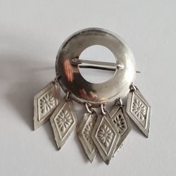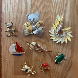 Broscher förknippas ofta med ädelstenar, guld och silver. Trenderna genom årtiondena har dock även lämnat plats för retrobroscher och färgglada plastvarianter. Broscher finns i ett närmast oändligt antal olika varianter, både trendiga och klassiska. I Traderas utbud av begagnade broscher kan man hitta broscher silver och broscher guld. I allra bästa fall finns en Chanel brosch eller två ute för auktion – en dröm för den som gillar att klä sig klassiskt stilrent. Den som vågar ta ut svängarna har ofta ännu mer att hämta. Broscher, smycken och kläder är ett intresse som delas av många. Individuella preferenser styr garderobens innehåll och dessa förändras över tid. Titta igenom utbudet av aktiva annonser så kan du upptäcka broscher som gjort sitt i en persons smyckesgarderob, men som blir huvudnumret i din. Hos Tradera har du möjlighet att hitta begagnade broscher i alla prisklasser, från slutsålda varianter från budgetkedjorna till diamantprydda varianter från välkända juvelerare.