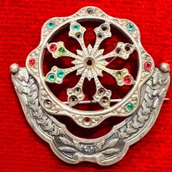 Broscher förknippas ofta med ädelstenar, guld och silver. Trenderna genom årtiondena har dock även lämnat plats för retrobroscher och färgglada plastvarianter. Broscher finns i ett närmast oändligt antal olika varianter, både trendiga och klassiska. I Traderas utbud av begagnade broscher kan man hitta broscher silver och broscher guld. I allra bästa fall finns en Chanel brosch eller två ute för auktion – en dröm för den som gillar att klä sig klassiskt stilrent. Den som vågar ta ut svängarna har ofta ännu mer att hämta. Broscher, smycken och kläder är ett intresse som delas av många. Individuella preferenser styr garderobens innehåll och dessa förändras över tid. Titta igenom utbudet av aktiva annonser så kan du upptäcka broscher som gjort sitt i en persons smyckesgarderob, men som blir huvudnumret i din. Hos Tradera har du möjlighet att hitta begagnade broscher i alla prisklasser, från slutsålda varianter från budgetkedjorna till diamantprydda varianter från välkända juvelerare.