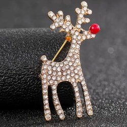 Så söt brosch ren rudolf guldfärgad strass