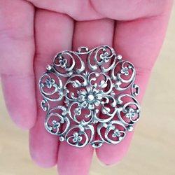 BROSCH MED FINA DETALJER KONTROLLSTÄMPLAT SILVER D9=1954 , HANDARBETE