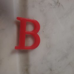 Brosch Bokstaven B i Röd Plast Nål i Silvrig Metall Bredd 2 cm Längd 3 cm