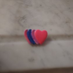 Brosch 4 Hjärtan av Plast i Rosa Lila Kornblått Bredd 3 cm Höjd 2 cm