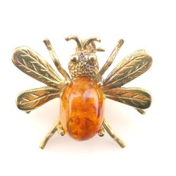 BROSCH, Fluga, 8K guld, bärnsten, 2,49g, stl: 18,8 x 22mm.