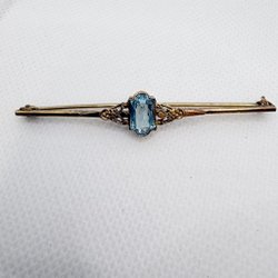 Vintage brosch med små blåa stenar och en mitten stor blå sten