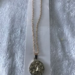 Halsband Hänge Vit häst i en Oval Kedja Silvrig Metall Längd ca 44,5 cm