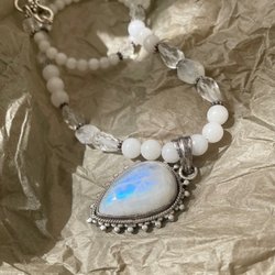 Magiskt regnbågsmånstens och bergkristall- halsband