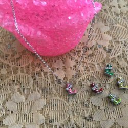 Halsband med stort hänge med blommor på (2057)
