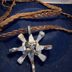 Fint halsband flätat läderband och stort hänge (1758)