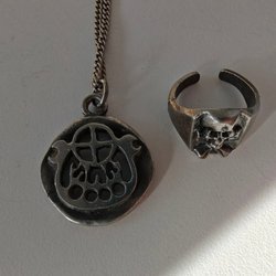 Silverfärgat halsband med hänge och dödskallering