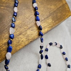 Halsband och armband med lapis lazuli och rosenkvarts