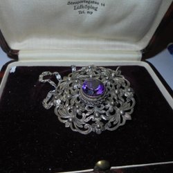 halsband, brosch i silver med lila sten, vintage