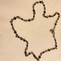 Halsband i metall , med små kulor i tre längder