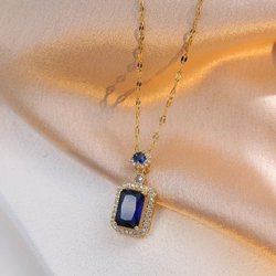 45 50 cm Guldpläterad halsband kristaller gåva safir replik rektangulär sten