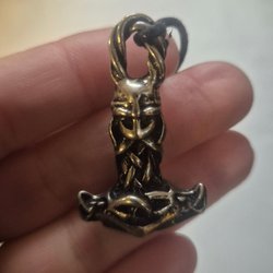 Ny/oanvänd! Mjölner, Tors hamnare hänge med svart snöre justerbar,1970-tal