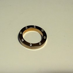 Stålring med 750 18 karats guld på. Ryerye ca 20-23 mm, lite uttänjt