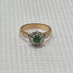 Diamantring i 18k guld stl. 17,3 med smaragd
